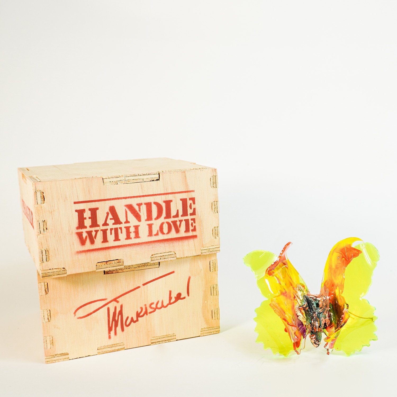 Ambar Joy is 3.5” x 3.5” Each piece is numbered, signed, and placed into a handmade wooden box with a label that reads, “Handle with Love.”