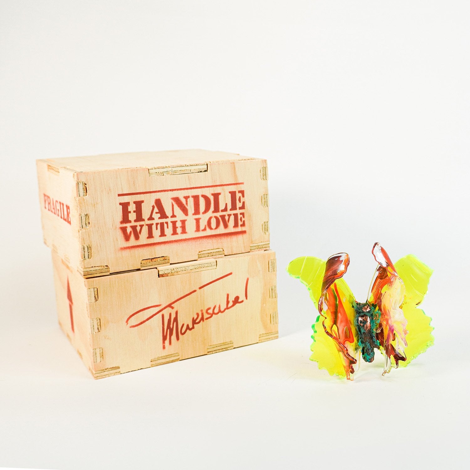 Ambar Joy is 3.5” x 3.5” Each piece is numbered, signed, and placed into a handmade wooden box with a label that reads, “Handle with Love.”